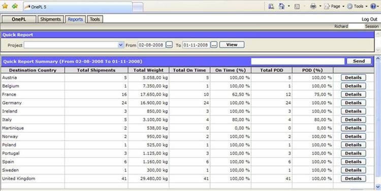 Via onze intenetapplicatie ziet u hoeveel zendingen u heeft aangeboden en hoeveel gewicht daarmee was gemoeid. U ziet hoeveel zendingen op tijd zijn gearriveerd en hoeveel niet. U kunt de dag-, week- of maandrapportages downloaden in Excel voor nadere analyse.
